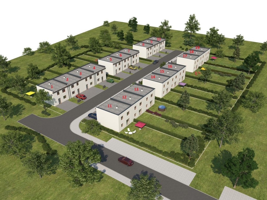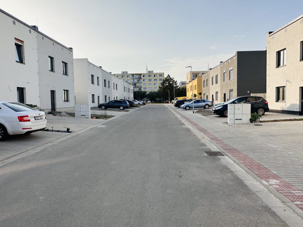 Pro naše klienty byla připravena lokalita s 19 pozemky určenými k výstavbě řadových domů. Všechny domy byly navrženy v dispozici 5+kk se 108 m² čisté podlahové plochy. Lokalita byla kompletně zasíťovaná a veškeré inženýrské sítě jsou zkolaudovány a předány.