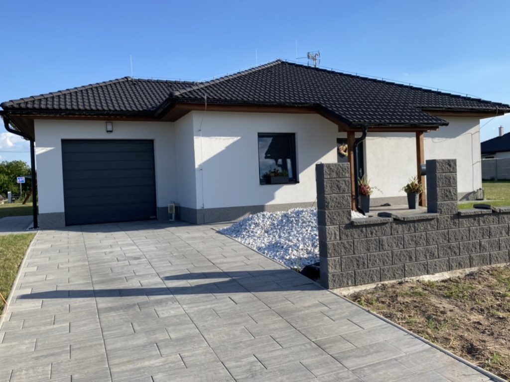 Pro naše klienty jsme v této lokalitě realizovali celkem 4 rodinné domy typu bungalov. Domy jsou dispozičně řešeny jako 5+kk, s 104 m² čisté podlahové plochy a 126 m² zastavěné plochy. Celá lokalita je po kompletním zasíťování, zkolaudování inženýrských sítí a předání obci.